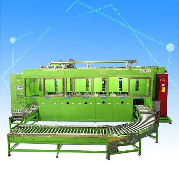 全自動真空過程由PLC自動控制,設備生產(chǎn)主線由2個真空脫氣超聲波清洗,1個強力真空超聲波洗, 2個蒸汽洗+真空干燥組成,其工作原理是利用超聲波滲透力強的機械震動力沖擊工件表面并結(jié)合碳氫清洗劑的化學去污作用,在真空狀態(tài)下進行全面清洗,使工件表面和盲孔、狹縫干凈。